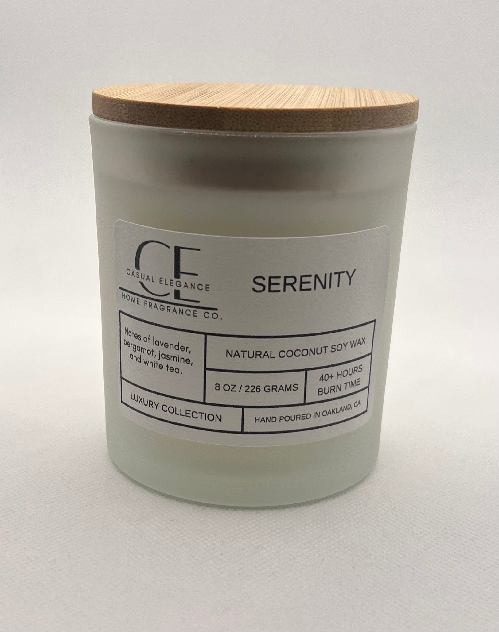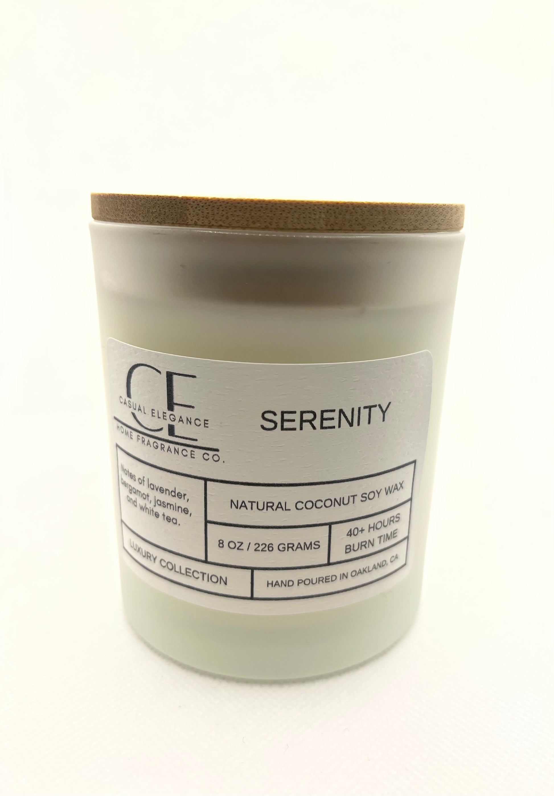 Serenity is an elegant fragrance blend of lavender, chamomile, bergamot, jasmine, sandalwood and white tea creates a warm and inviting scent. Find peace and tranquility in the midst of chaos with our Serenity Candle. Light it up, take a deep breath and let the worries of the day fade away.